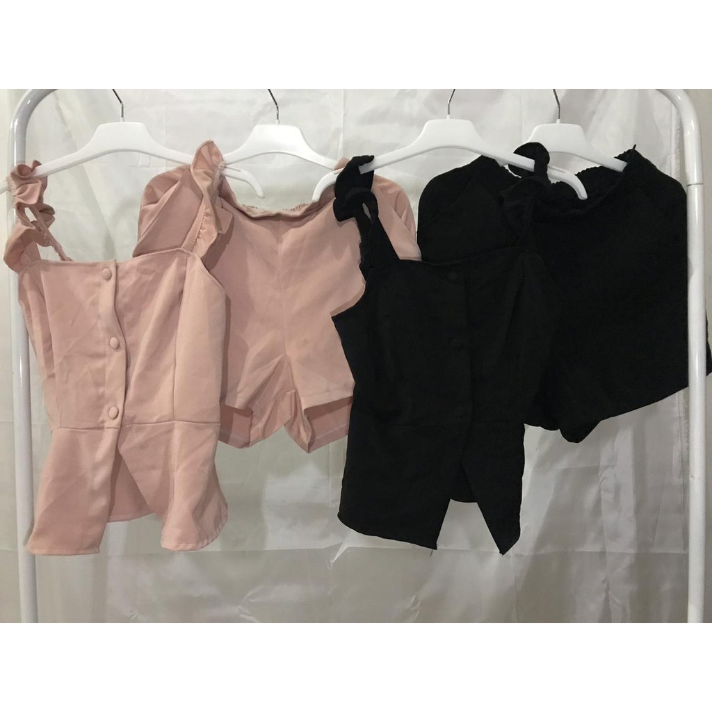 Bkk Chika Curly Set Crop Top And Highwaist Short Ala Korea Baju Import Bangkok Murah Handcarry Shopee Indonesia